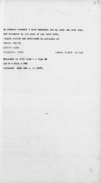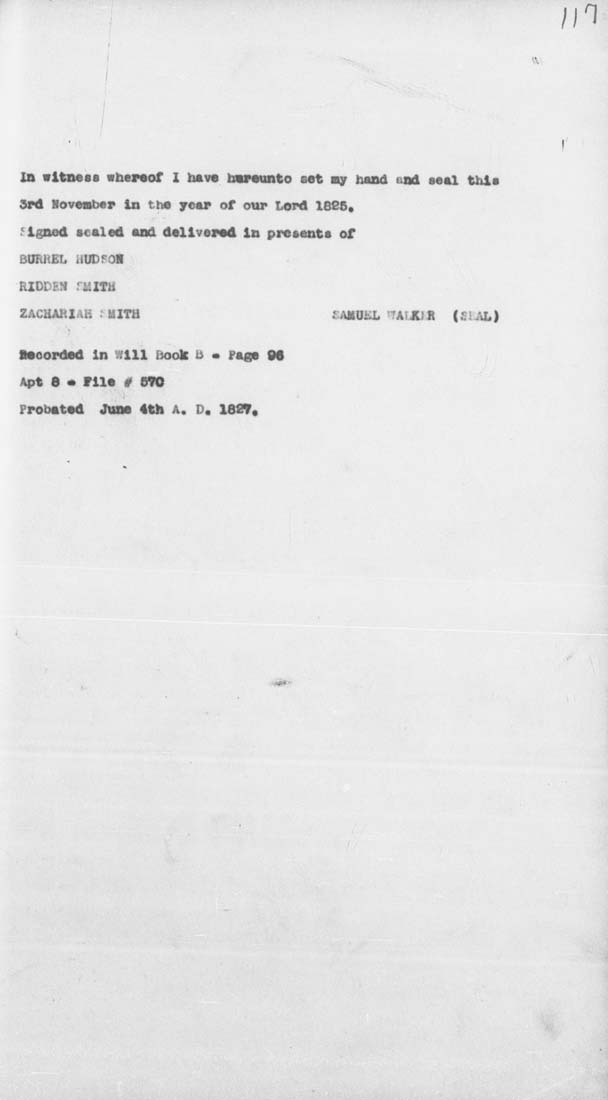 Samuel Walker (1750-1826) Will