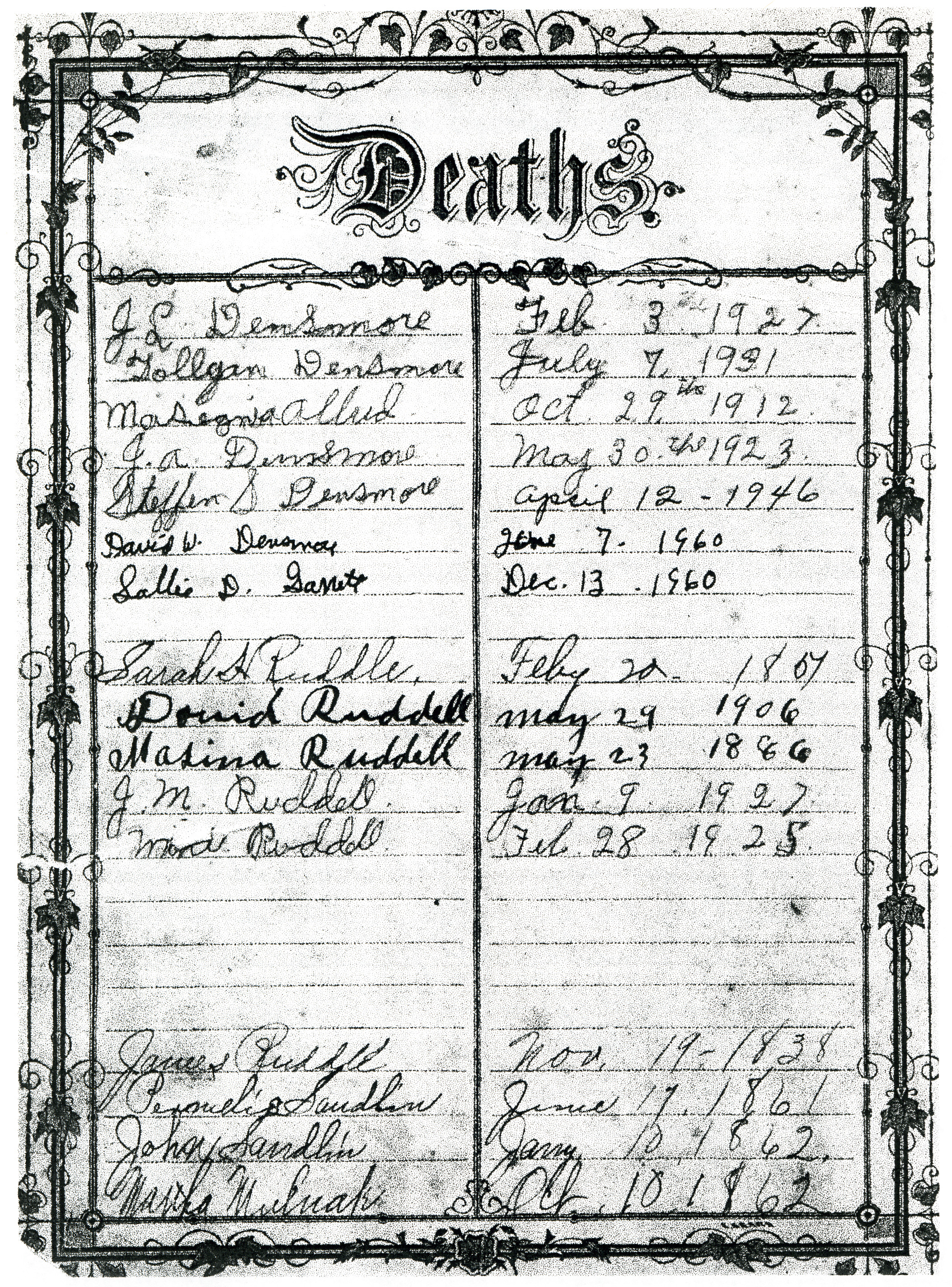 : Densmore-Ruddell Bible Deaths